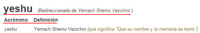 Yemach Shemo Vezichro. Así como Yeshu es un acrónimo, también Jesús es otro acrónimo. Y todas las Biblias Cristianas recibieron en sus diversas ediciones esta mentira.